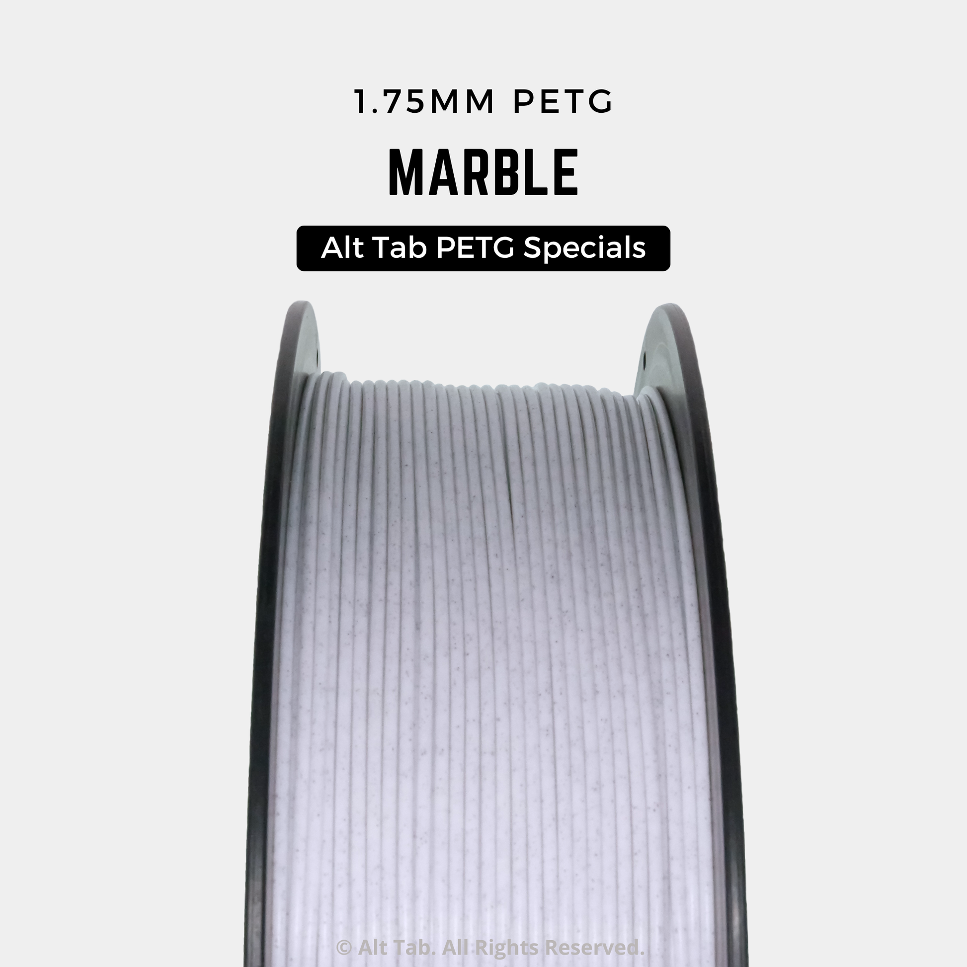 Add a realistic marble-like finish and appearance with Alt Tab’s Marble-infused PETG. Marble infused PETG looks great right off the bed and requires even lesser post-processing as it hides layer lines really well! Unlike Carbon Fiber PETG, it will not wear down your nozzle quickly but it does so slowly.